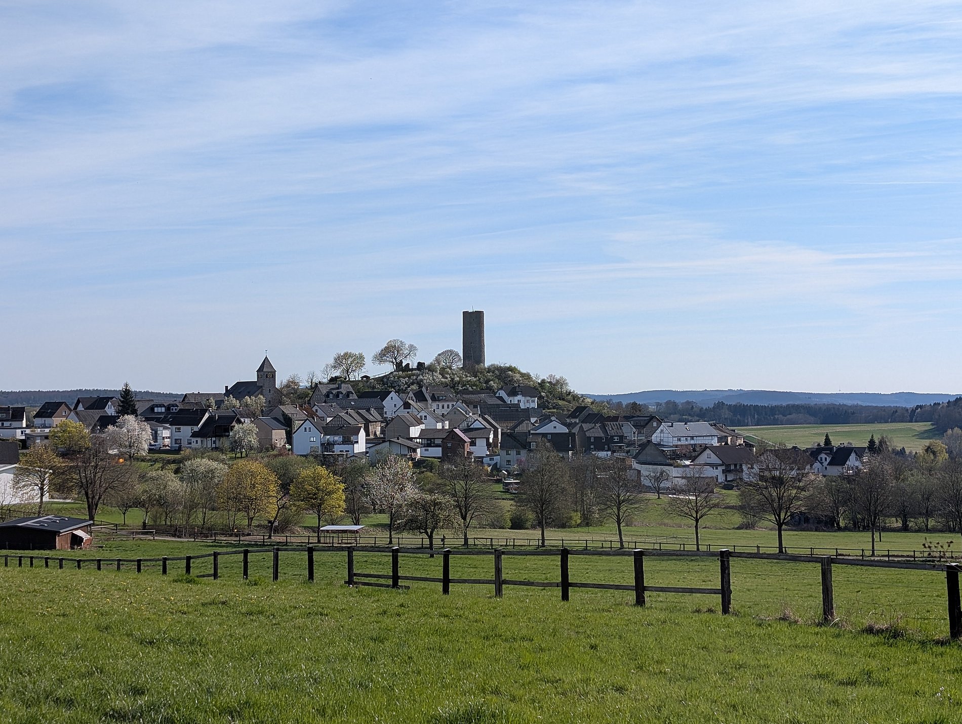 Unterhalb der Burg wurde 1861 die jetzige Ortskirche errichtet 1862 eingeweiht. Die Kirche lädt die Gläubigen und manche Wanderer zum stillen Gebet ein. Hier versammelt sich die Gemeinde zu den verschiedenen Gottesdiensten, zu frohen und zu traurigen Ereignissen.